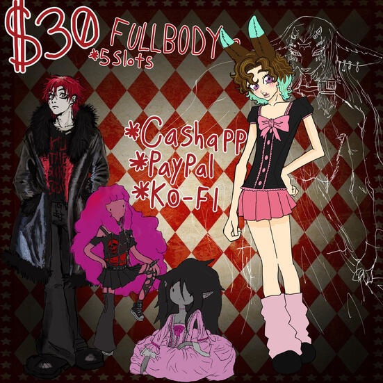 Payment is taken upfront. I only accept PayPal and CashApp as payment. If you have a specific deadline in mind, please let me know! If there is no deadline i may take up to a month or a couple weeks. no refunds. comms are always open! IMPORTANT: i have an unstable living situation and may be slow to respond at times. please be patient. Thank you all for your support!